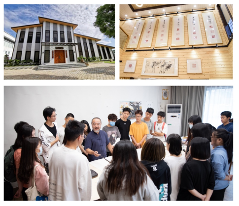 师生在蔡照波艺术馆学习岭南书刻陈庭略冯展豪摄