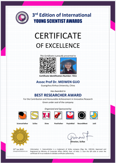 我校管理学院郭美文副教授荣获2022年国际青年科学家奖