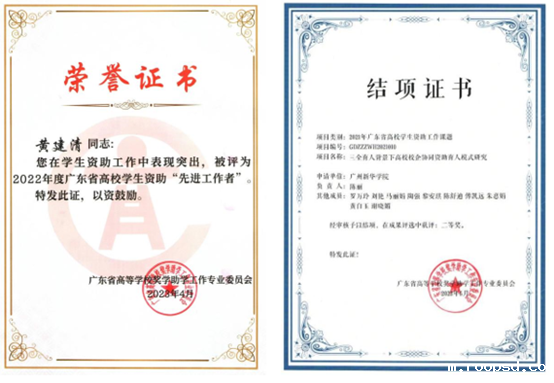 我校学生资助工作成绩突出。近五年来,我校在广东省高校学生资助工作绩效考核最高评分位列全省高校第十,被评为“优秀”;我校教师共14人次荣获“广东省高校学生资助先进工作者”,共获6项“广东省高校学生资助工作课题研究优秀成果奖”;在广东省学生资助工作典型评选中,我校2个项目获“学生资助工作案例典型”、2位老师获“学生资助工作者典型”、1名学生获“励志学生成长成才典型”。其中,《媒体融合·资助育人——高校校园融媒体资助育人新模式》项目被评为“广东省高校学生事务管理精品项目”。