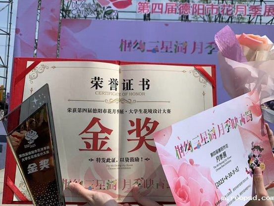 4月30日,伟德app入口资源与城乡规划学院2022级风景园林专业学生高梓毅、佘佳淼、余恺欣、龙雨琦,以及2022级人文地理与城乡规划专业学生李雨轩,在指导老师蔡健婷、占潇羽的带领下,在第四届德阳市花月季展大学生花境设计大赛中凭借作品《同声刻,再春时》荣获金奖,赢得1万元奖金。其作品成功落地建设,得到当地参展市民的广泛好评。