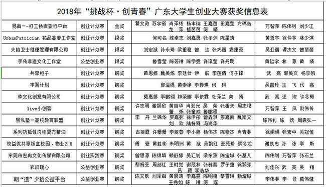 我校2018年“挑战杯•创青春”广东大学生创业大赛获奖情况