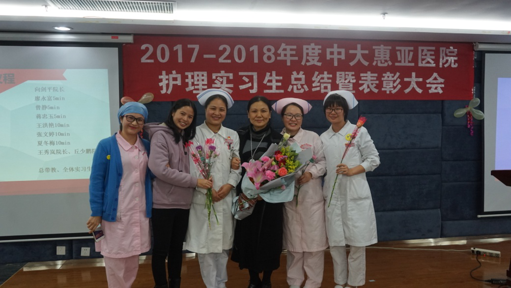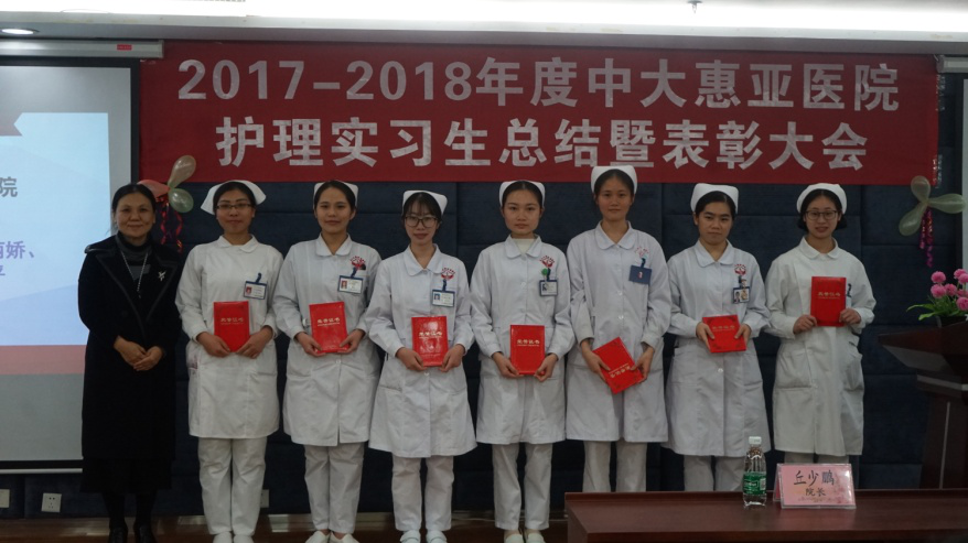 中山大学附属第一医院惠亚医院护理部公布2017-2018年度优秀实习生名单,共评选出七名优秀实习生,其中五名为学校护理学院学生,分别是李惠平、付小娟、何丽娇、王静婷、黄丹。