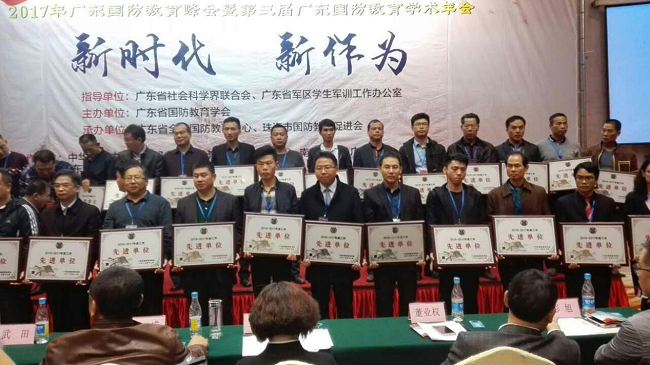 会议对2016—2017年度广东省国防教育工作中的先进单位和个人、2017年广东省国防教育优秀论文作者、2017年度广东省高校国旗护卫队优秀单位和优秀指导老师进行表彰,并颁发奖牌和证书。我校荣获2016—2017年度广东国防教育学会工作先进单位,李海峰、陈丽两位同志被评为先进个人;包仕国、卢黄熙、汪朗撰写的《“军民融合”视域下的高校国防教育初探》获论文一等奖,卢黄熙撰写的《国防教育要加强党对军队绝对领导制度真理性与价值性的认识》获论文三等奖。我校保卫处副处长罗立和、军事理论教师包仕国、保卫处干事谢亮三位同志参加了这次会议并作了研讨交流。