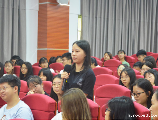 在提问环节,同学们踊跃提问。针对国内外校园学习和生活的异同点问题,Danielle Kamato进行详细的回答:“在学习方面,国外的任课教师通常会把教学资源放到网上,同学们可以随时随地查阅;在生活方面,国外的学生较少在学校住宿,因为校内住宿费用较高,学生通常选择在外面租房子,并且会在空闲时间选择一份与所学专业相关的兼职来补贴学习和生活费用。”针对学生提出的“我们的实验教学方式与国外有何差异?”Danielle Kamato指出,国外每个班的学生人数相对较少,均是依次按照“实验预习-教师讲解-学生操作或进行实验设计-分析实验结果”的步骤进行。