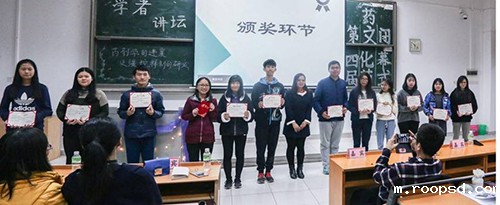梁超峰教授首先简要地阐述了药剂的发展。他指出药剂的最高境界是:定时、定量、定位;调(缓控)释制剂的研究方向是:疗效更好、使用更方便、更安全;而制剂的未来研发方向则是:稳定、高效、低毒、使用方便、适应和满足临床需求。梁超峰还结合自身的经历与实验室的基础状况,讲述了数种制药仪器,并生动地描绘了运用仪器正确制药的药物性状。