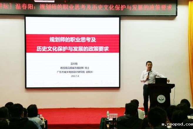 4月27日上午,广东省城乡规划设计研究院副院长、教授级高级规划师温春阳前来我校广州校区带来主题为“规划师的职业思考及历史文化保护与发展的政策要求”的讲座,我校王庭槐校长、周云党委书记、资源与城乡规划系陈俊合主任、李玲副主任及两百多位师生聆听讲座。