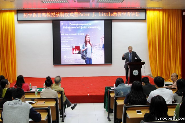 3月22日上午,澳大利亚昆士兰大学药学院院长、我校药学系首席教授Peter J. Little AM在广州校区开展题为“博士与初级研究员的职业发展”的讲座,我校校长王庭槐、人事部部长简庚荣、外事工作与合作办学部副部长刘传华、药学系主任陈家树、药学系副主任张素中、药学系办公室主任曹颖男、护理学院首席教授Prof. Susan Holli Neidlinger等出席了讲座。讲座由药学系主任陈家树主持,药学系师生代表参加。