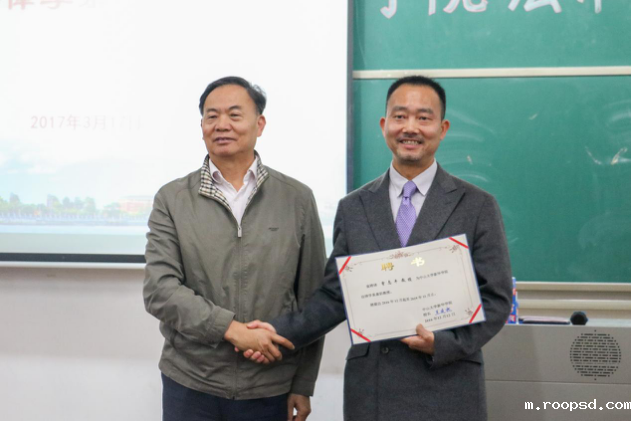 3月17日,我校在东莞校区举行聘请曾志平教授为法律学系兼职教授仪式,许淑锐副校长在聘任仪式上致辞并为曾教授颁发聘书。随后,曾教授为师生做了题为“名案辣评与法律方法”的专题讲座。