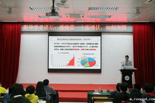 面对国内外信息安全形势严峻问题,潘主任认为,当今网络安全形势不容乐观,从世界范围来看,各种黑客攻击行为愈加猖獗,在网络空间竞争激烈化、新技术引入新问题的综合作用下,网络安全将迎来更加严峻的挑战。此外,潘主任还借用“棱镜门事件”、“希拉里邮件门事件”、“2016年网络十大安全事件”等典型案例对当今互联网安全威胁进行分析,并表示,网络边界无法判定,信息窃取手段越来越高明,传统的安全思路已难以应对大数据时代的信息安全挑战。