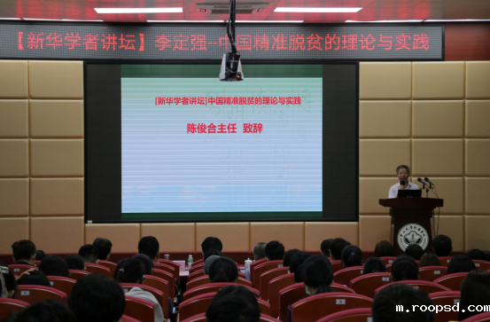 陈俊合在讲话中表示,精准脱贫是中国目前的中心工作,中国的精准脱贫具备高度的理论与现实意义,希望同学们能从李定强副院长的讲座中得到启发,学有所获。