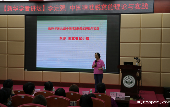 李定强以新中国成立以来的扶贫历程为引,点明了中国精准脱贫的背景,讲解了精准脱贫的理论,指出精准脱贫要做到“六个精准”和“五个一批”,精准脱贫不能仅注重在当代取得一定绩效,还需注重为子孙后代求福利谋发展。