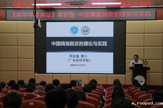 11月17日,由中山大学bv伟德体育app官网学院主办,学科与科技管理处、资源与城乡规划系共同承办的主题为“中国精准脱贫的理论与实践”学者讲坛在广州校区讲学厅举行。本次讲座特邀广东省科学院副院长李定强教授担任主讲嘉宾,资源与城乡规划系副主任关欣教授主持。我校校长王庭槐教授、学科与科技管理处处长张玲副研究员、资源与城乡规划系主任陈俊合教授,党总支书记、副主任李玲副教授,副主任宋云高级规划师,以及资源与城乡规划系师生近180余人参加了此次讲座。
