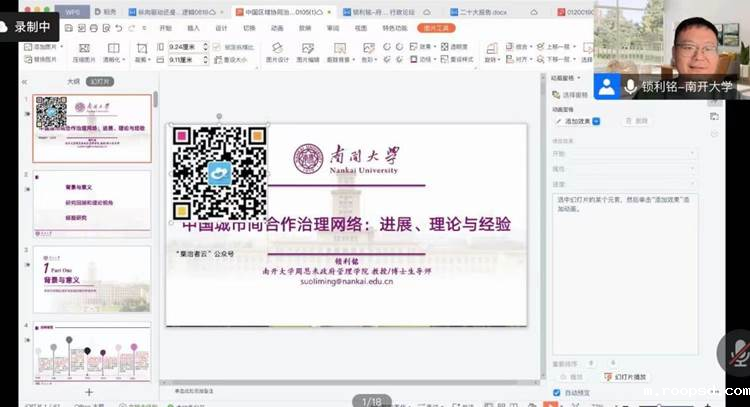 12月7日,南开大学周恩来政府管理学院教授、博士生导师锁利铭教授,应邀为我校师生作题为“中国城市间合作治理网络:进展、理论与经验”的线上主题讲座。公共治理学院120余名师生参加学习。