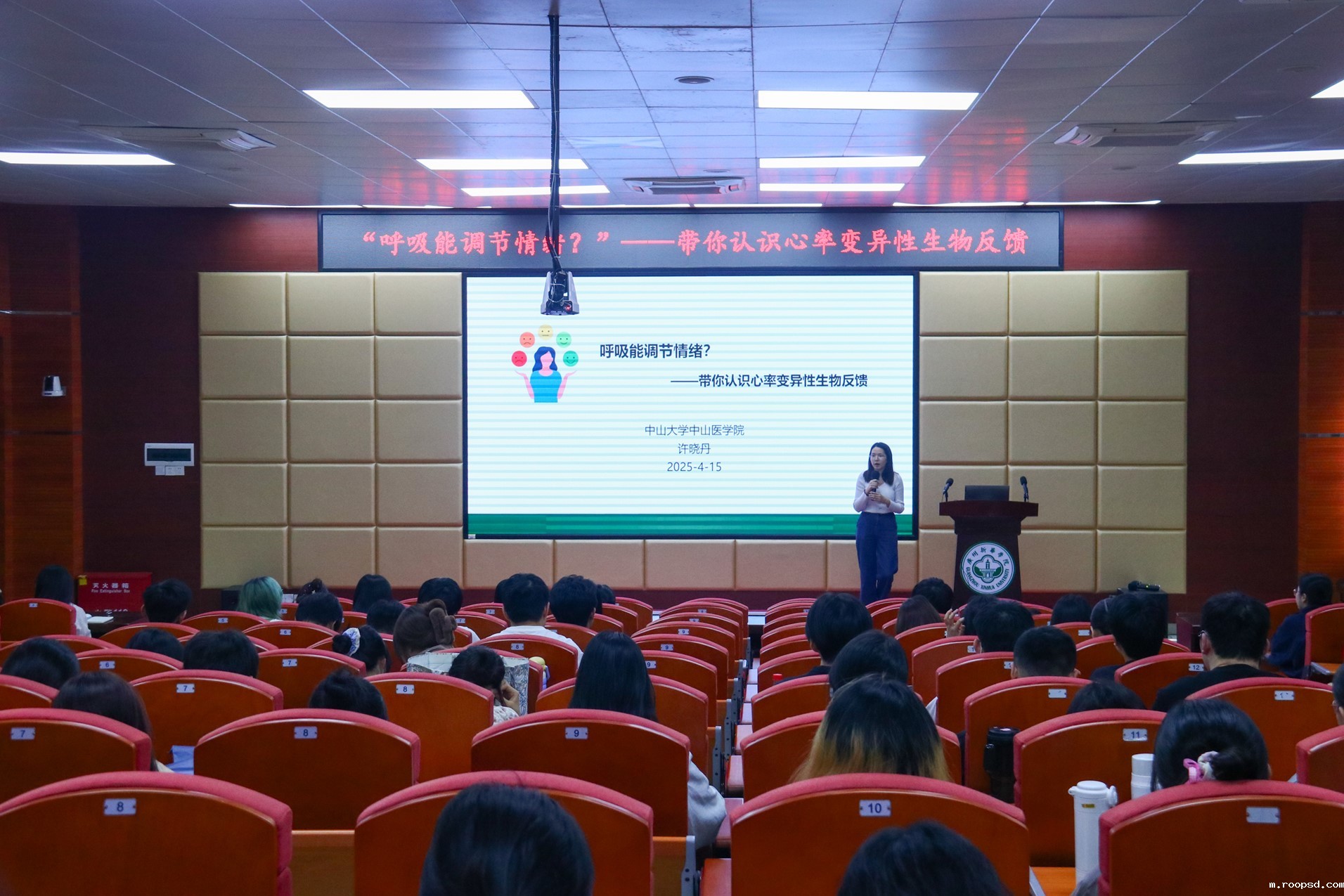 4月15日,伟德app入口(以下简称“我校”)在广州校区召开主题为“呼吸能调节情绪?——带你认识心率变异性生物反馈”的主题讲座,邀请中山大学中山医学院许晓丹博士担任主讲嘉宾,广州校区医学类专业学生约100人参加讲座。