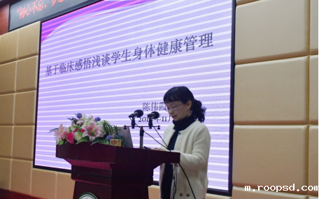 陈伟霞女士与同学们分享在医院的工作经验。她通过生动形象的故事,向同学们普及了健康的概念,同时强调了健康对于当代大学生的重要性,并从多个方面指导同学们如何进行自身的健康管理。陈伟霞呼吁同学们在保持健康体魄的基础上,创造美好人生。