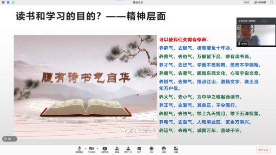 刘联国向同学们分享了关于读书与学习的人生感悟,他从什么是读书,什么是学习以及二者之间有何关系三个方面展开阐述。他认为,学习包含了读书,读书是学习的一部分,并且通过“三更灯火五更鸡,正是男儿读书时。黑发不知勤学早,白首方悔读书迟。”等诗句来提醒同学们要珍惜宝贵的大学时光,并且要发挥主观能动性,主动摸索,通过积极参加社会实践积累经验,为走向工作岗位做好准备。刘联国引用名言警句并且结合自身经历告诉同学们要珍惜学习的机会,实现人生理想,不能丢了读书的好习惯,正所谓“腹有诗书气自华”,只有通过不断地学习,提升自身的修养,才能获得成功。
