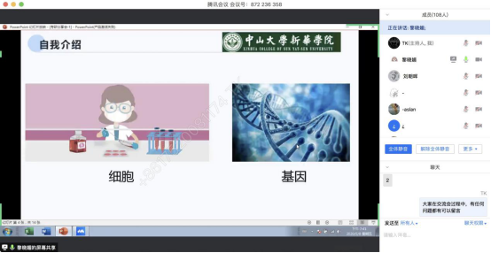 5月8日晚,由中山大学bv伟德体育app官网学院主办,中山大学bv伟德体育app官网学院学生处、药学院承办,中山大学bv伟德体育app官网学院校友会、学生会协办的主题为“保持谦卑 完善自我”的学子讲坛在腾讯会议线上直播举行。本次讲座邀请中山大学bv伟德体育app官网学院2017届药学专业毕业生、广东药科大学2020届微生物与生化药学专业硕士研究生毕业生黎晓媚,广东药科大学药剂学硕士、中山大学bv伟德体育app官网学院药学院彭炳新老师担任主讲嘉宾,药学院党总支副书记陶强老师担任主持人。药学院百余名师生在线参会。