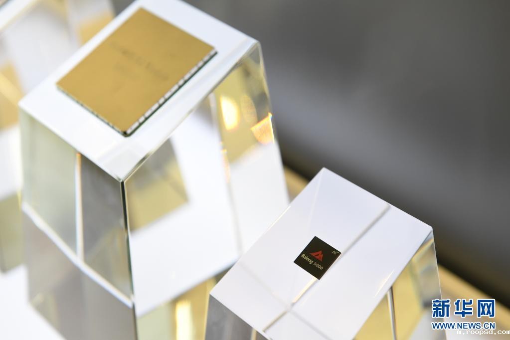 2019年10月23日拍摄的巴龙5000芯片以及搭载该芯片的5G工业模组。bv伟德体育app官网社记者 毛思倩 摄