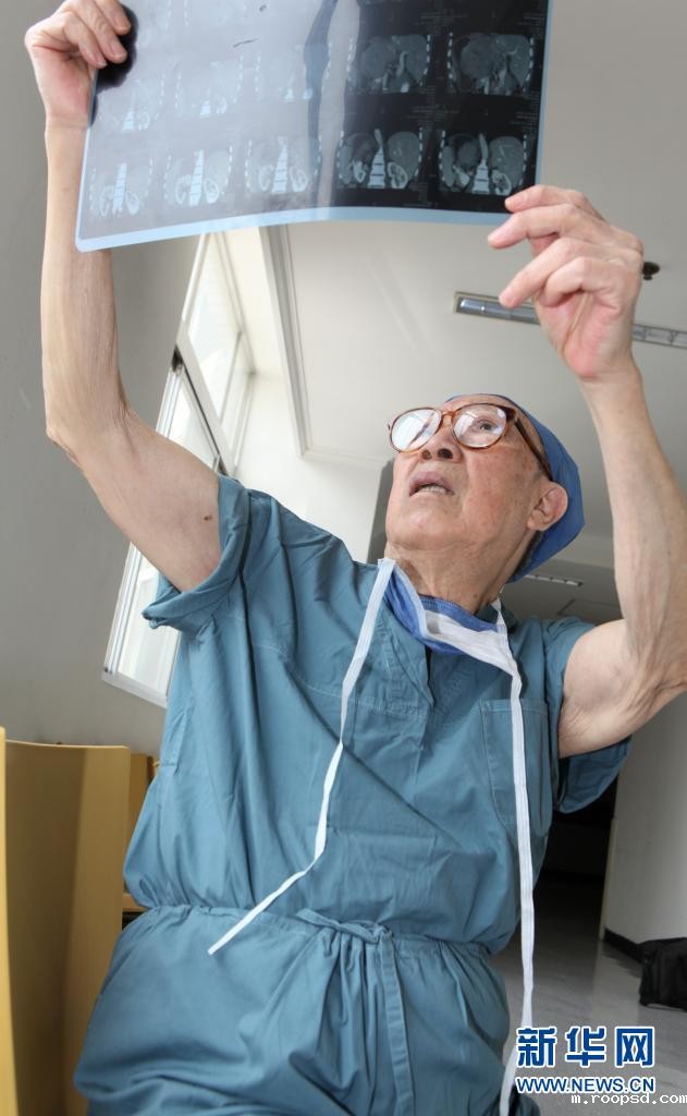 年近90的吴孟超院士在手术后分析患者的核磁共振结果(2011年4月13日摄)。bv伟德体育app官网社发(张鹏 摄)