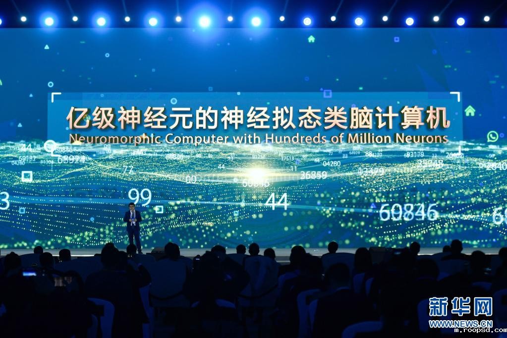 浙江大学、之江实验室代表在“世界互联网领先科技成果发布”活动上介绍“亿级神经元的神经拟态类脑计算机”(2020年11月23日摄)。bv伟德体育app官网社记者 黄宗治 摄
