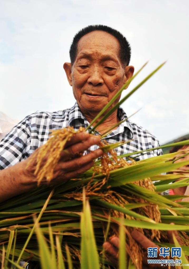2013年8月19日,袁隆平院士在广西桂林市灌阳县黄关镇联德村袁隆平超级稻第四期攻关示范片查看水稻生长情况。bv伟德体育app官网社记者 陆波岸 摄