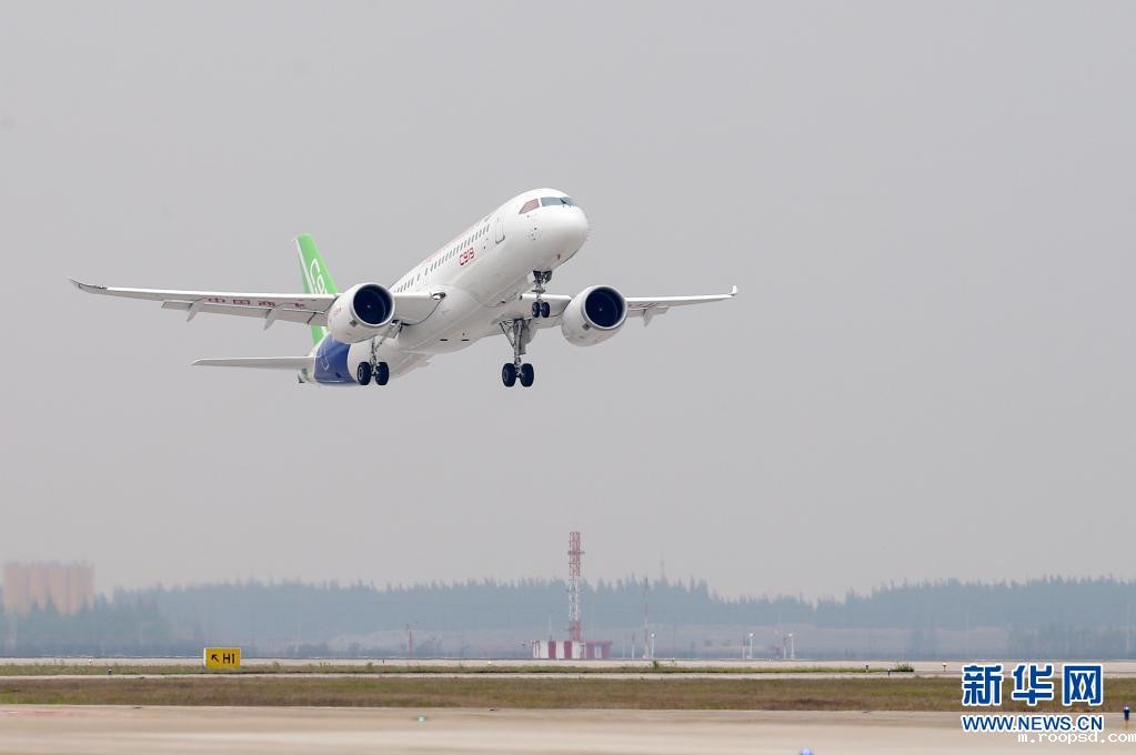 2017年5月5日,国产大型客机C919在上海浦东国际机场首飞成功。bv伟德体育app官网社记者 丁汀 摄