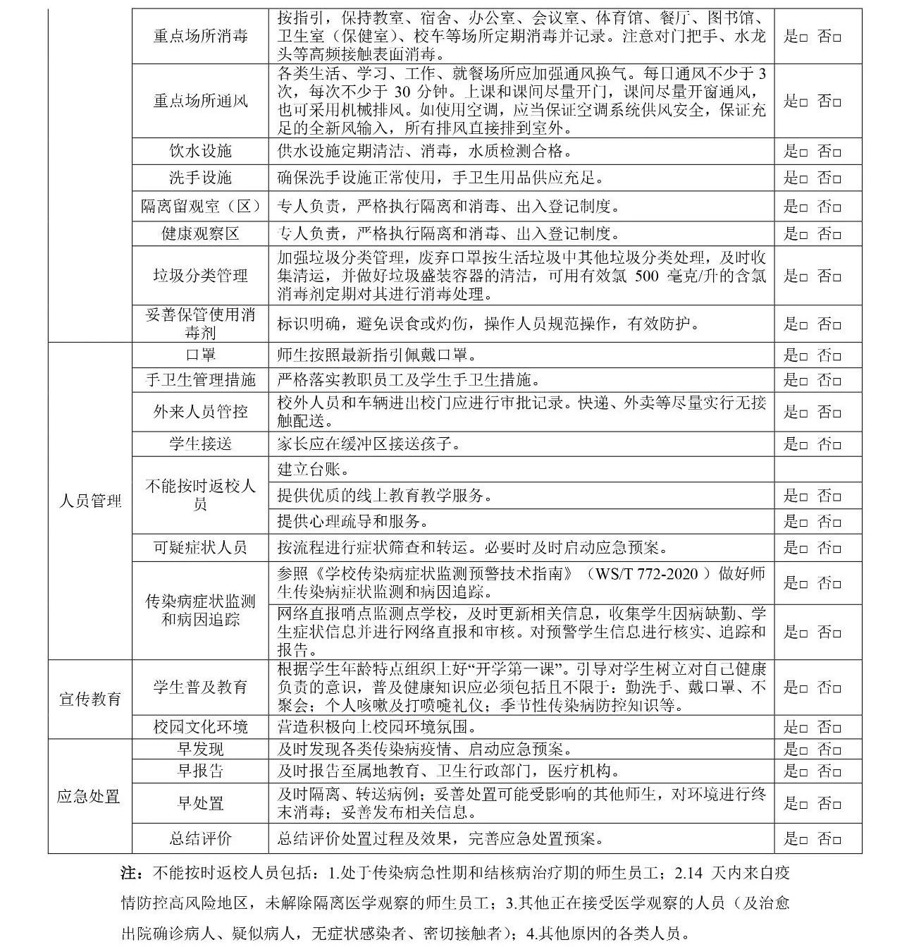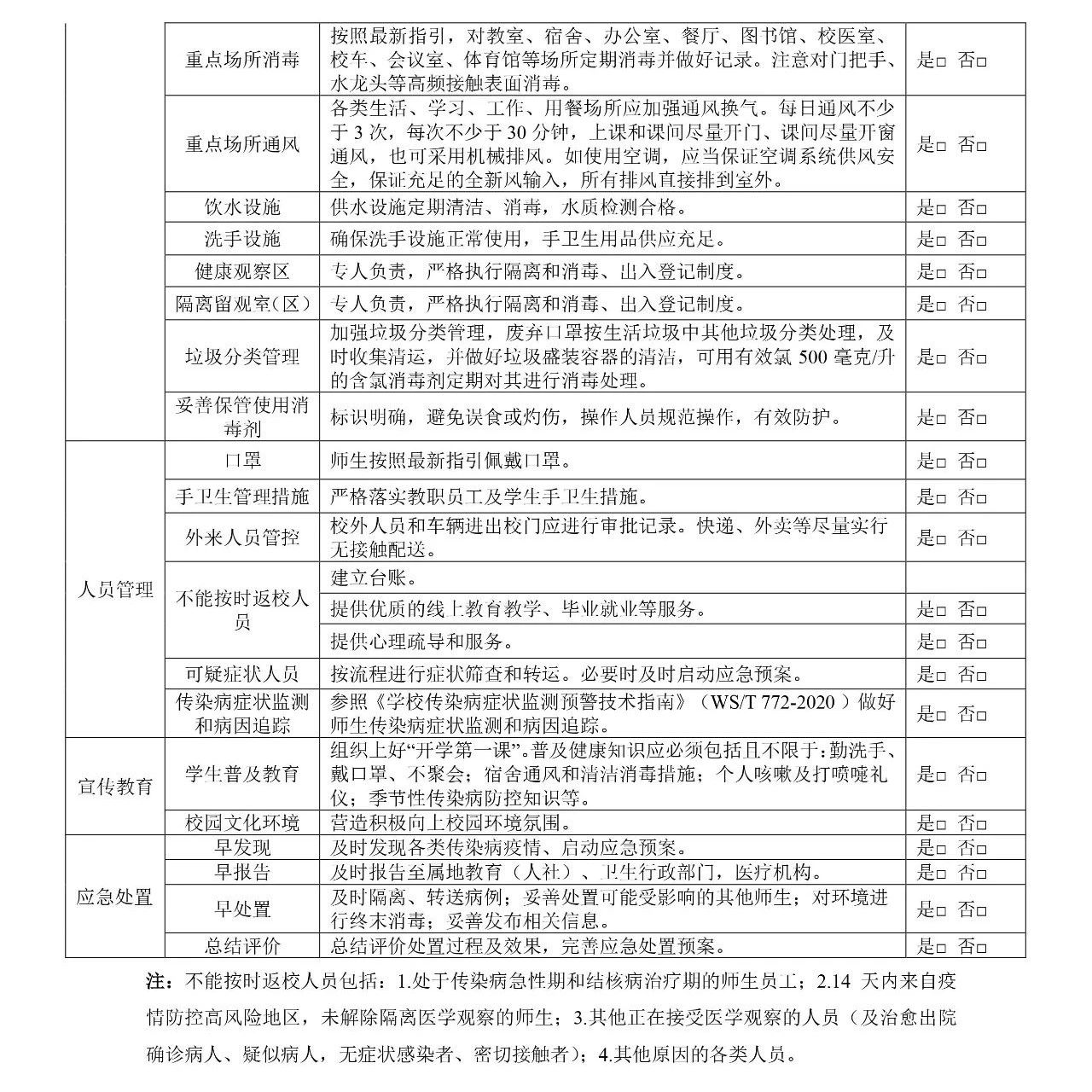 各级各类学校应对照《工作清单》,逐项落实疫情防控工作要求,及时查漏补缺,确保防控工作到位后方可开学。