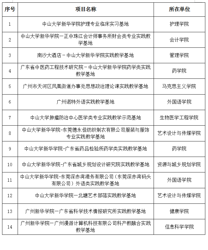广东省大学生实践教学基地项目一览表