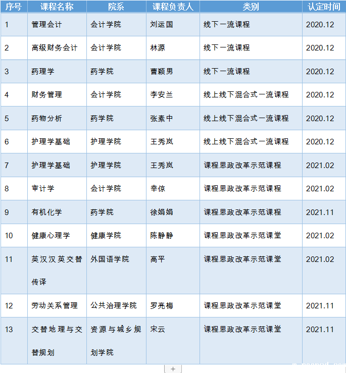 2020至2021年,管理会计等6门课程被认定为广东省一流本科课程;护理学基础、审计学、有机化学3门课程入选为广东省课程思政改革示范课程;健康心理学、英汉汉英交替传译、劳动关系管理、交替地理与交替规划4门课堂入选为广东省课程思政改革示范课堂。这标志着我校课程建设又上新台阶,也彰显我校教师教学改革和实践成效。