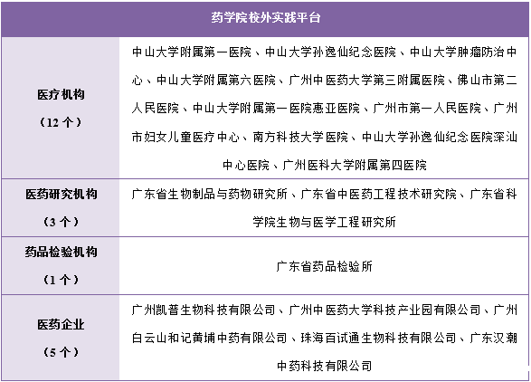学院通过多维度建设实践教学资源,强化学生实践能力。校内拥有药学综合创新实验室、药剂学实验室等,建立了虚拟仿真实验示范中心与线上课程资源。校外与中山大学附属医院、医药研究机构等20余家单位合作,提供多元化实习实践平台。并与中山大学、澳大利亚昆士兰大学等国内外知名高等院校进行合作办学,提升国际竞争力。成立伟德app入口汉潮中药科技创新产业学院,打造促进中医药产业、社会发展的校企合作人才培养模式,培养符合社会发展需求的应用型中医药产业技术人才。