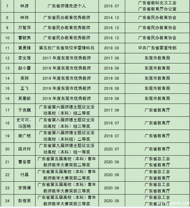 曹颖男获2019年广东省“教育教学成果奖二等奖”(排名5),2020年校级“教学成果奖一等奖”(排名1),2020年校级科“研成果奖一等奖”(排名1)。曾获广东省民办教育“优秀教师”及校级“科研业绩突出贡献个人”“教书育人模范”荣誉称号。