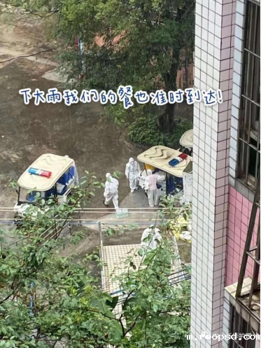 工作人员在雨天为师生准时送餐