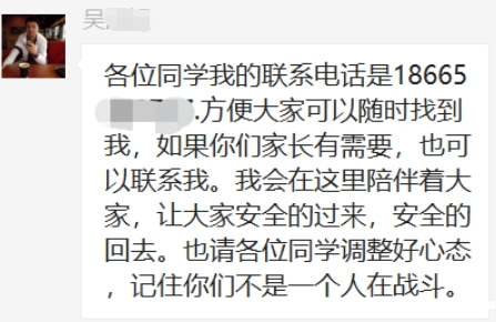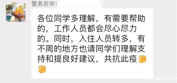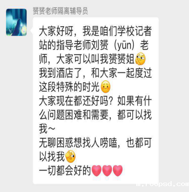 学校还在我们出来隔离的第二天安排了老师过来陪我们度过隔离生活。派过来的老师说学校很担心我们,我知道,学校真的很爱我们