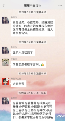 6月18日下午,学校发出封控管理的第一条通知。作为中文系办公室的负责人,吴桂玲立即进入了“备战”状态,密切留意着麻涌镇及学校关于新冠肺炎疫情的动态。几乎一夜未合眼的她,19日凌晨还在组织中文系在校东莞校区的教职工及家属参加核酸检测。同时,在“暖暖中文”微信群中不厌其烦地叮嘱老师们,最后,一一确认参加完成核酸检测人员情况。
