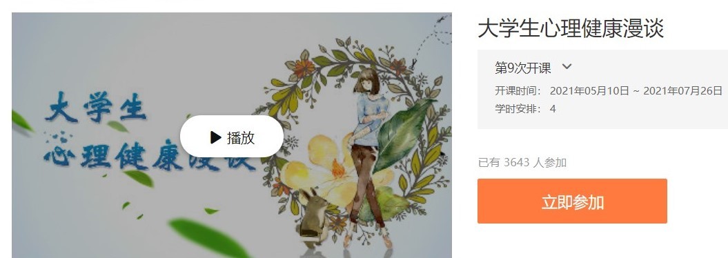 大学生心理健康漫谈 东北大学 中国大学MOOC(慕课):https://www.icourse163.org/course/NEU-1001930012?from=searchPage