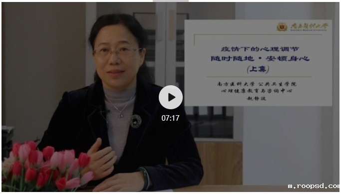 随着疫情的持续,一些心理问题逐渐浮现,既有对疫情的恐慌和焦虑,也有因为长时间宅家而产生的烦躁和抑郁。赵静波教授将从体验环境、放松身体、调整认知、稳定情绪、启动行为、调动资源的6个角度,为大家分享一些实用、简单的小技巧,帮助大家安顿身心,以更轻松的心情迎接抗疫的胜利!欢迎您的观看和转发!