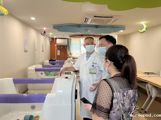 谭杰文一行还参观了崇爱医院的儿童康复中心、重症康复中心等特色康复中心,周和平重点讲解了院内的先进诊疗设备。