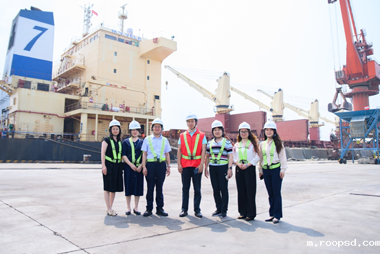 为深入开展学习贯彻习近平新时代中国特色社会主义思想主题教育走深走实,拓宽大学生就业、实习渠道,助力大学生高质量就业,5月18日下午,伟德app入口(以下称“我校”)党委书记郝登峰一行赴东莞深赤湾港务有限公司(以下称“东莞深赤湾”)走访调研,华南散杂货营运中心首席数字官、东莞深赤湾党总支委员、工会主席、总经理助理唐波,操作部总经理吴漫,人事行政部副经理李青勇、主任张瑞峰、主任何子豪、培训专员蔡珊香一行热情接待。