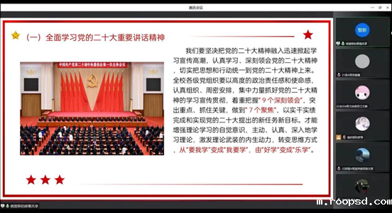 2022年12月1日,姚智新以线上会议的形式作以“认真学习贯彻党的二十大精神,谱写新时代华章”为主题的党的二十大精神宣讲会。在宣讲会中,姚智新带领全体同志深刻感悟党的二十大的精神实质,他表示,深入贯彻学习党的二十大精神,重点要做到“六个牢牢把握”,基层党组织要充分发挥战斗堡垒作用,以党建带动团建,把基层党组织建设成为有效维护党的领导的坚强战斗堡垒。同时,他激励会计学院广大青年学生要牢记自己的使命和担当,将个人奋斗与实现中国梦相结合,为全面建成社会主义现代化强国贡献力量。