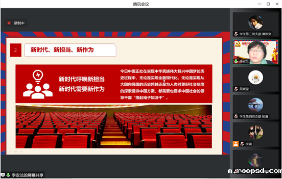 2022年11月11日,李安兰以线上会议的形式展开以“新时代、新担当、新作为”为主题的党的二十大精神宣讲会。在宣讲会中,李安兰带领全体同志回顾党的二十大开幕会,围绕“新时代、新担当、新作为”三个要点对党的二十大精神进行讲授和解读,号召全体师生党员要做新时代主动担当作为的奋斗者,矢志不渝地为党和国家的伟大事业而奋斗。她指出,会计学院党总支要继续在党建工作中发挥示范引领作用,在党的二十大精神指引下踔厉奋发,勇毅前行。