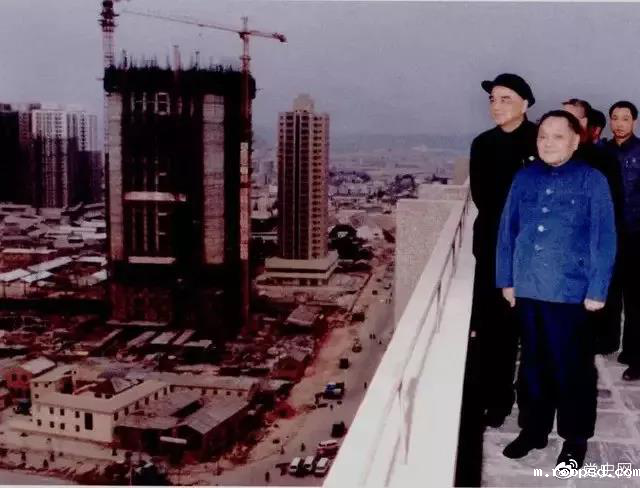 1984年1月24日,邓小平在深圳国商大厦楼顶俯瞰建设中的深圳全貌。